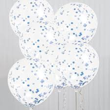 This 6-pack of clear balloons comes with 0.5 ounces of blue confetti and a small funnel, making these balloons easy to assemble.