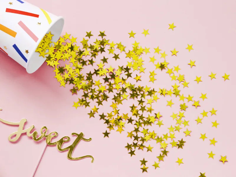 Gold Star 10mm Confetti - 30g Add a touch of elegance to your celebrations with this premium gold star confetti.