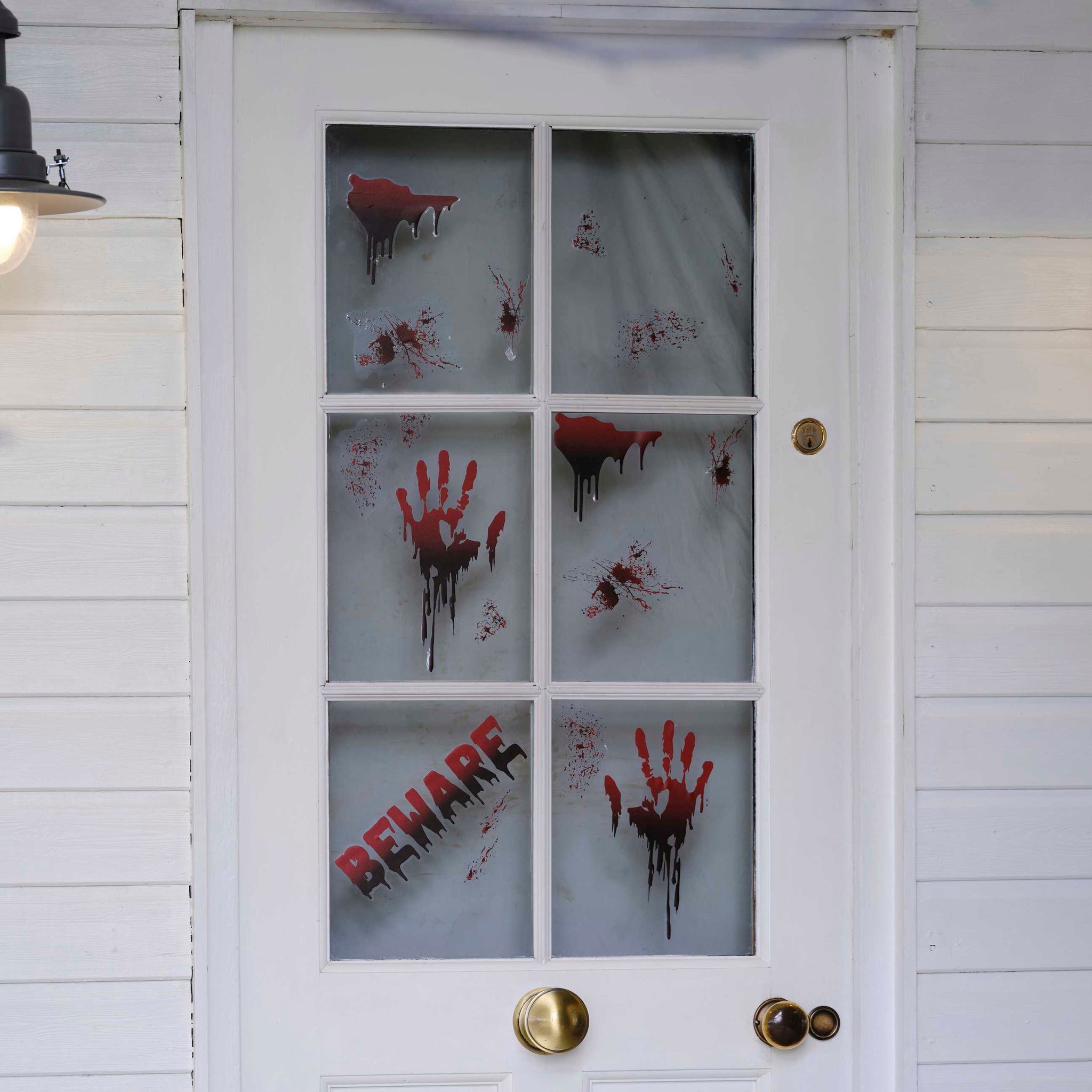 Beware! Create an eerie entrance to your Halloween party using these blood splatter Halloween window stickers.