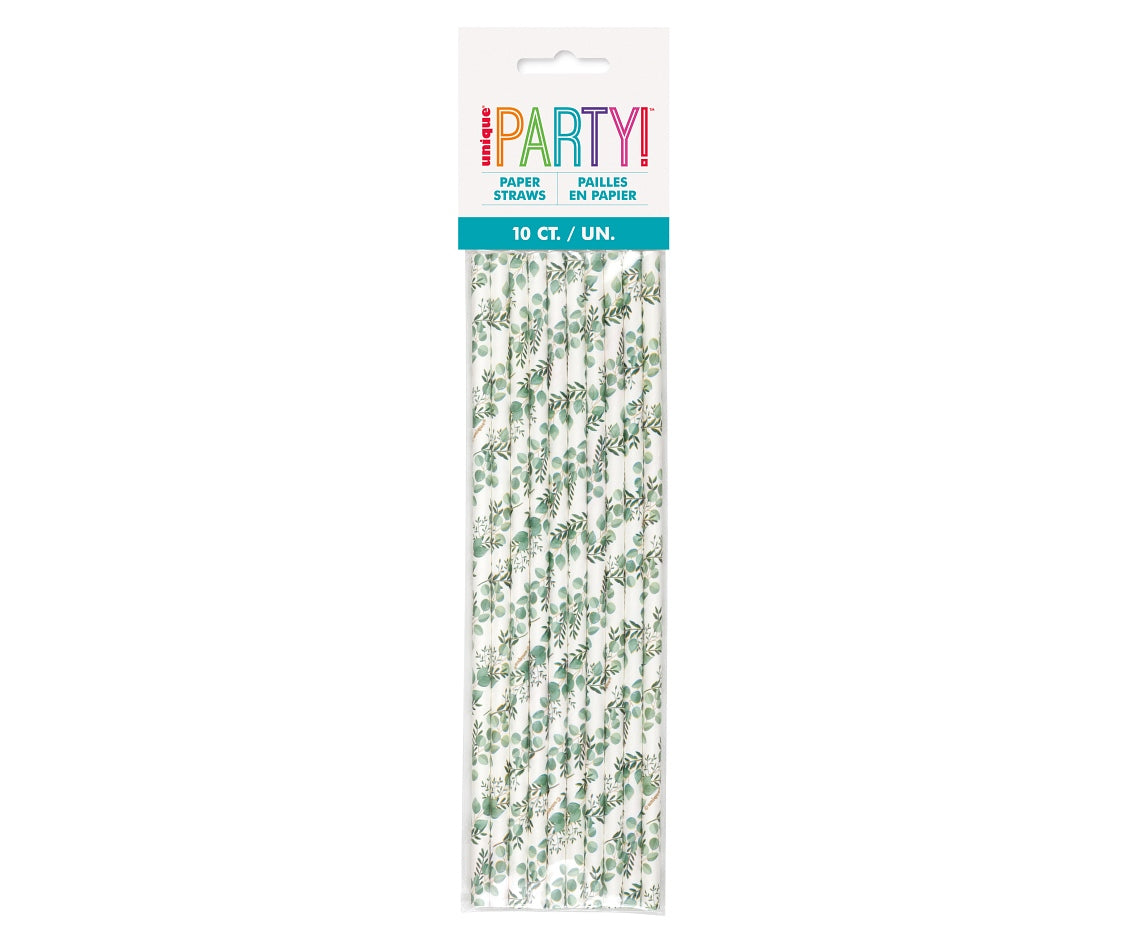 The prettiest paper straws with a lovely botanical print of Eucalyptus.