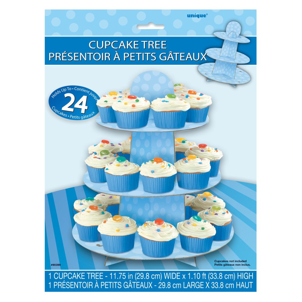 The Blue Cupcake Tree Stand is ideal for displaying your delicious cupcakes and it can display up to 24 cupcakes.. This Blue Cupcake Tree Stand measures 29.8cm wide and 33.8cm high and is perfect for making your cupcake the center of attention. This cupcake stand comes in blue and is decorated with light blue dots.