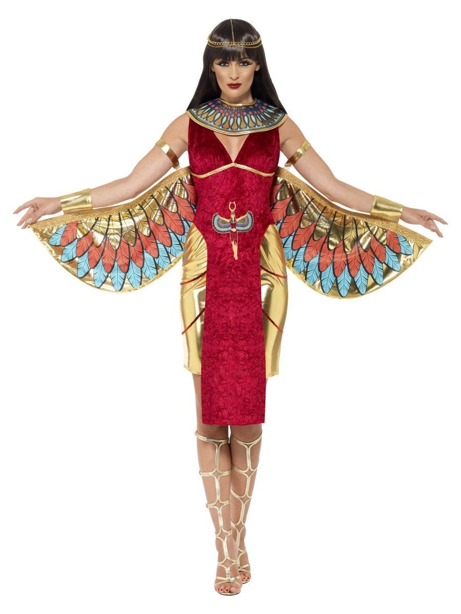 Egyptian Goddess Costume, Red, with Dress, Wings, Collar & Headpiece
