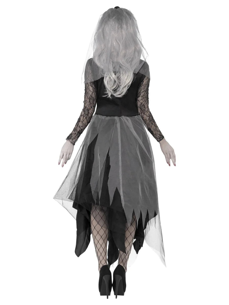 Graveyard Bride Costume, Grey, with Dress & Rose Veil.