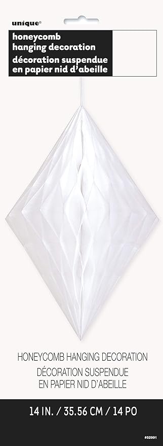 Enhance your event decor with our Tissue Paper Diamond Honeycomb Decoration. Measuring at 35 cm, this white honeycomb adds a touch of elegance to any space. Lightweight and easy to assemble, it's the perfect choice for weddings, parties, or any special occasion.