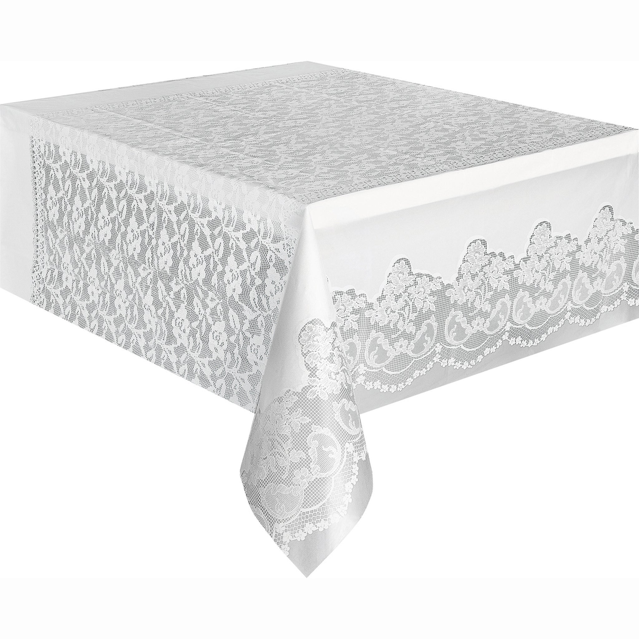 White Lace Effect Rectangular Plastic Table Cover, 54"x108" - 1.37m x 2.74m