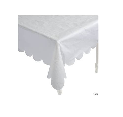 Add a touch of elegance to your next event with our White Scalloped Paper Table Cover! This 54"x108" table cover not only adds a clean, modern look but also makes clean up a breeze. No need to worry about spills or messes - just enjoy the party!